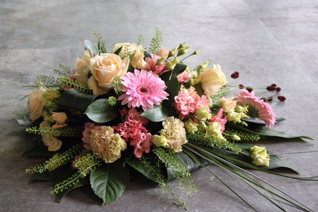 Let er op: Dat de getoonde afbeelding kan afwijken van de bloemen die in uw bloemstuk zijn verwerkt en ook de opmaak van het bloemstuk. De getoonde afbeelding is formaat klein.